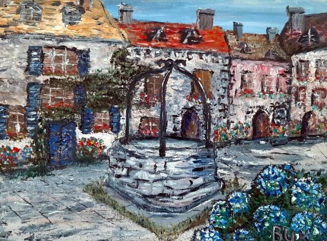 Samozřejmě Locronan neleží na Tenerife, ale na Bretani, ale já jsem měl letos mezi návštěvou Bretaně a návštěvou Tenerife celkem krátkou dobu, a tak ještě ovlivněn kouzelnými dojmy z Bretaně, jsem odlétal načerpat další kouzelné dojmy na Tenerife. Studni v Locronan maloval několikrát i známý český malíř Jan Zrzavý. Mně na Bretani učarovaly kromě překrásné architektury i nádherné hortenzie a květiny za okny a kolem domů, že jsem je musel domalovat i tam, kde původně nebyly. Také poslední obrázek Studně v Locronan zůstal v San Juan v obchůdku Giramondo k prodeji.