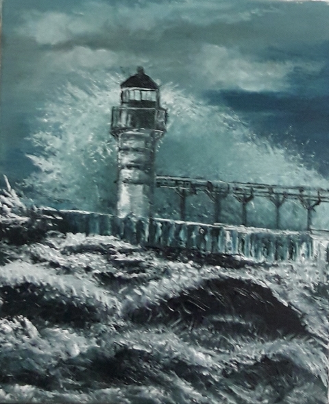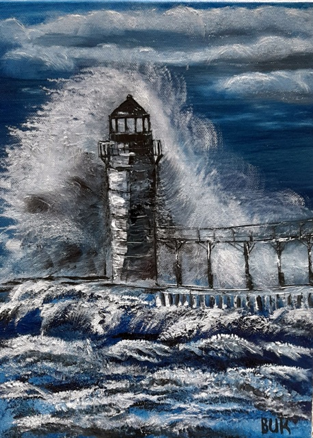 Obrázek malovaný na zakázku v roce 2023. Velikost je o něco málo větší 40 x 30 cm než u Majáku na Bretani původního. Barva se zdá jiná pouze díky použitému způsobu pořizování fotokopie. Časově bylo malování asi stejně náročné, ale i zde je jasně vidět, že ne pokaždé je obrázek stejný.