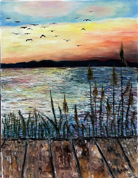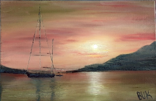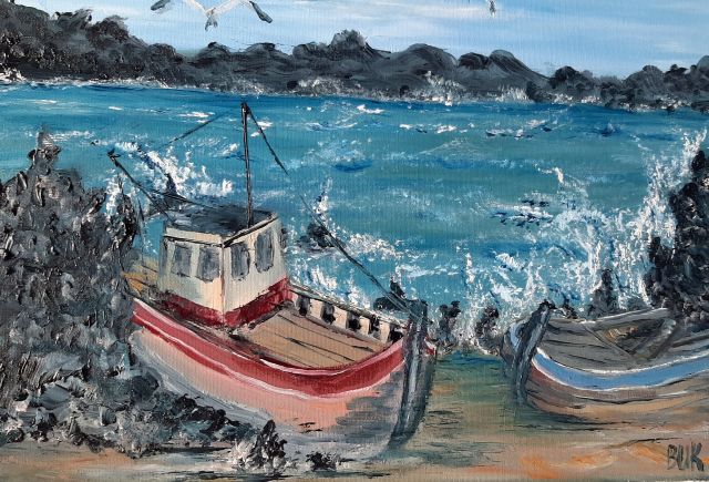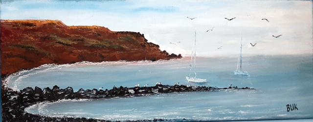 Loďku s racky na Tenerife mám už namalovanou celkem třikrát, Na poslední výstavě v klubu Point50+ si obrázek objednala jedna ze zákaznic, a tak mi nezbývalo, než jí její přání splnit. Snad se mi to povedlo... jak ale říkám, nikdy se nepodaří namalovat totéž.