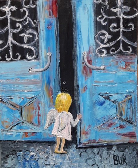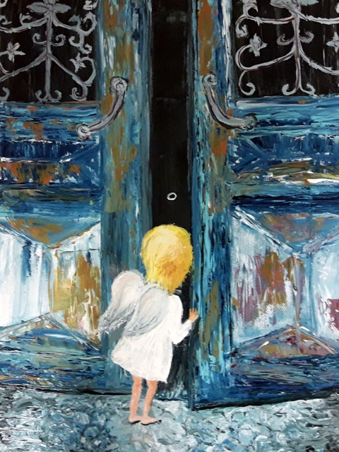 Andělíček u dveří II olej na plátně 24 x 30 cm