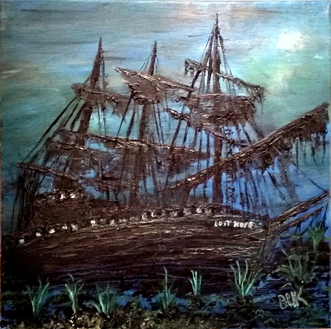 Ztroskotané čluny olej na plátně 40 x 3,0 cm