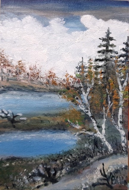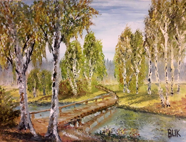 Ruské břízky v Norsku olej na plátně 30 x 25 cm