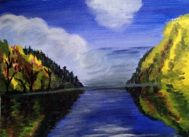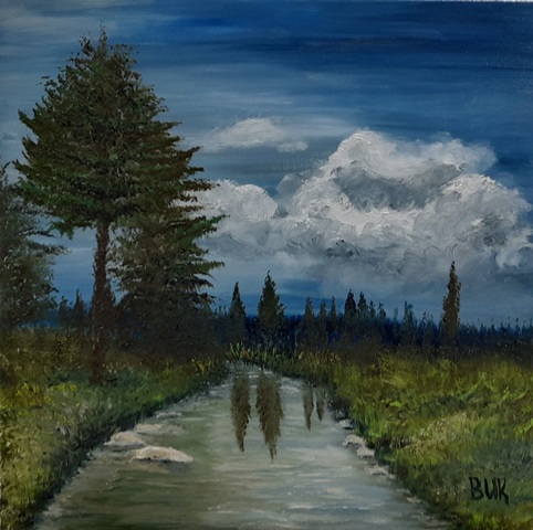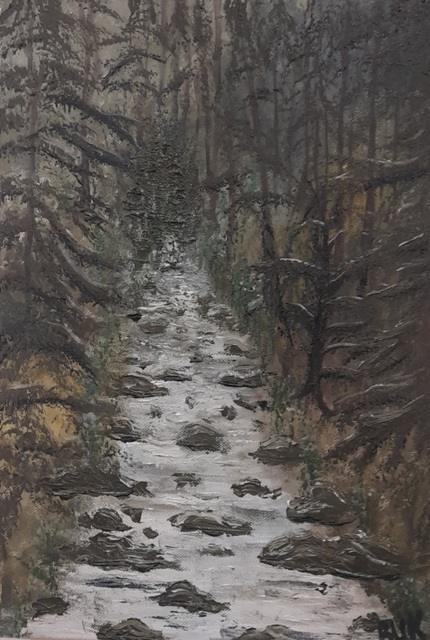Obrázek Šumavská říčka jsem poprvé uviděl u svého kardiologa v čekárně. Byla to velká barevná fotografie v klipártovém rámu. Vyfotil jsem si jí, ale asi jsem měl nějak divně nastavené focení na telefonu a vylezla mi z toho příšerná fotka, že jsem měl obavu, jestli vůbec podle toho půjde malovat. Nevadí, ale bavilo mě to, akorát že obrázek stále dokola upravuji a upravuji a upravuji, zkrátka nejsem spokojen s výsledkem. Nejspíš je to tou nepovedenou fotografií. Snad se mi to ale jednou nakonec podaří a budu moci přistoupit k malbě dalšího obrázku, tentokrát pro mne možná již těžšího, i když známějšího kalibru.