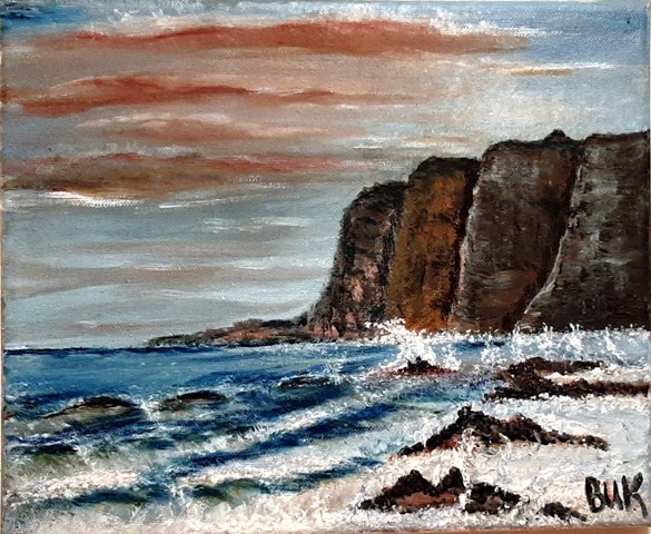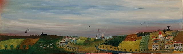 Obrázek pobřeží se jménem Piana Grande Sicilia jsem namaloval na podzim roku 2024, po návratu z putování s přáteli po Sicílii v létě téhož roku. Sicílie je nádherná země s překrásnými památkami. Dokonce se kousek od nás, blízko mčsta Agrigento, nacházelo známé Údolí chrámů. Všude kolem nás byly kilometry prázdných kamínkových pláží, jelikož bylo ještě před sezónou. Nikde na světě jsem neviděl tak pravidelně zakulacené kamínky, navíc v tak obrovském množství. Po celou dobu našeho pobytu bylo moře klidné a jen si povalovalo svými kamínky, které se stále dokola vyplavovaly a zase vracely zpátky do pěnivé vody. Sám jsem si jich omylem, myslím že pět, přivezl v botách klučíkům domů na drápky. Tento překrásný výhled na zapadající slunce jsme měli z terasy naší vily, kde jsme byli ubytovaní - výhled na louky a stráně, kde se každý den pásly ovečky, až ke kopcům na konci prvního zálivu, kde jsme při jedné procházce s Nadějí potkali dokonce volně pasoucí se koně. Jak jsem už říkal, moře bylo spíš klidné, až poslední dva dny našeho pobytu, jakoby nás už posílalo domů, začaly vlny být vyšší a vyšší. Pakliže jste se v moři dostali trochu dál od břehu, mohli jste se už krásně pohupovat na měkoučkých vlnách. Ale když chtěl člověk moře opustit, nebylo vůbec možné překonat hustou pěnu a proud plný vracejících se kamenů. Jako by moře nechtělo svého návštěvníka pustit zpátky na břeh, na kýženou svobodu. A pak to s vámi najednou fláklo do vysokého břehu a museli jste hodně zabrat, abyste se rychle dostali z dosahu další vlny. Na Sicílii bych se určitě někdy zase rád vrátil.