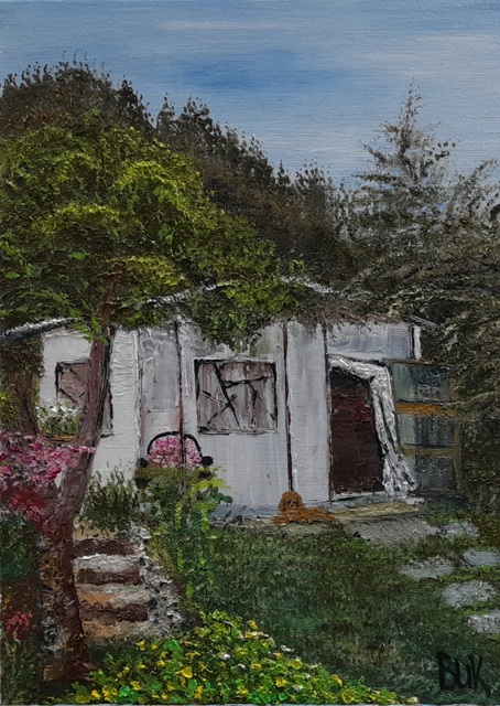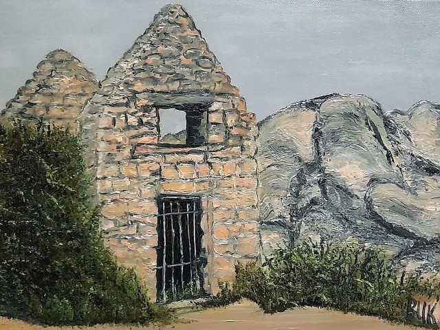 Naše putování s Nadějí po Bretani v roce 2023 mi poskytlo nepřeberné množství témat na malování a mezi nejzajímavější z nich patřilo hned po WC Vincenta Van Gogha v Pont Aven, Růžové pobřeží - Cote de Granit Rose s Cestou celníků - Sentier des Douanier, vedoucí z městečka Perros-Guirec na jihu Bretaně do městečka Ploumanaćh. Nádherné kamenné, ale místy i písčité pobřeží s obrovskými narůžovělými balvany plné tajůplných zákoutí muselo kdysi přímo vybízet piráty a pašeráky alkoholu, tabáku a jiného tenkrát nedostatkového zboží k ukrytí svého kontrabandu či kořisti. Cestou jsme narazili na pár polorozpadlých stavení, u kterých nebylo jasně patrno, k čemu vlastně kdysi sloužili, a u tohoto kamenného domu s mříží mě napadla hned šatlava. A tak se takto nakonec i obrázek jmenuje. Obrovské kulaté kameny kolem na mne působily spíš uklidňujícím než skličujícím dojmem, ale zavřený bych tu být jako vězeň nechtěl. Možná, kdybych měl u sebe barvy, štětce, plátno a stojan, nebylo by čekání na eskortu tak úmorné...