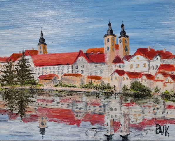 V Sedleci, nebo v Sedlci? To je asi jedno. Jedná se o městečko, resp. předměstí samotných Karlových Varů. Hned vedle kostela je krámek U Lukáše, kde jsem si vždy kupoval pixlové pivečko. Kostel samotný je nádherný, bavilo mi jej malovat. Trápil jsem se ale s ošemetnou perspektivou. Kdo to nezná, neví o čem hovořím. Nakonec i když si myslím, že se mi obrázek kostela docela povedl, stejně se mi do něho nevešlo všechno co jsem chtěl a jak jsem to chtěl. Dokonce i druhá, zadní věžička zůstala ukrytá lidskému oku. Je mnohem menší, než hlavní zvonice a nachází se v zadní části areálu kostela. Obraz darován mé dcerce Kačence do domečku.