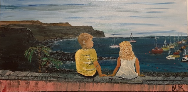 Ne, nebyl jsem v Pireu. Je to sice škoda, ale Tenerife také stojí za to. A písničku Děti z Pirea od paní Simonové a pana Chladila znám velice dobře. Maloval jsem si takhle jednou lodičky v přístavu na Tenerife a k nim na zídku jsem si namaloval děti, co s námi tenkrát také byly malovat a jednou skutečně vedle sebe na té zídce takhle seděly. A kdosi je vyfotil a já dostal nápad. Byla by vyloženě škoda tento moment nezachytit a obraz nenamalovat. A povedlo se? Co myslíte?