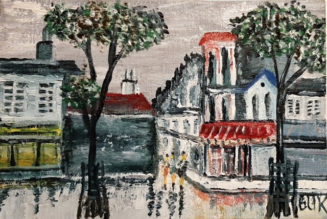 Je podobná miniatura jako Mont Martre, tedy velikostí určitě. Jen nevím, kdo obrázek v originále maloval, ale jeho prostý motiv mi učaroval. I tady jsem se pokusil namalovat alespoň něco podobného. Oba obrázky, miniatury Mont Martre a Podzimní variace bych rád jednou věnoval někomu jako dárek v malém malířském stojánku. A tím zatím končí výčet mých obrázků a těším se na příští rok, až zase budu jejich řadu rozšiřovat.
