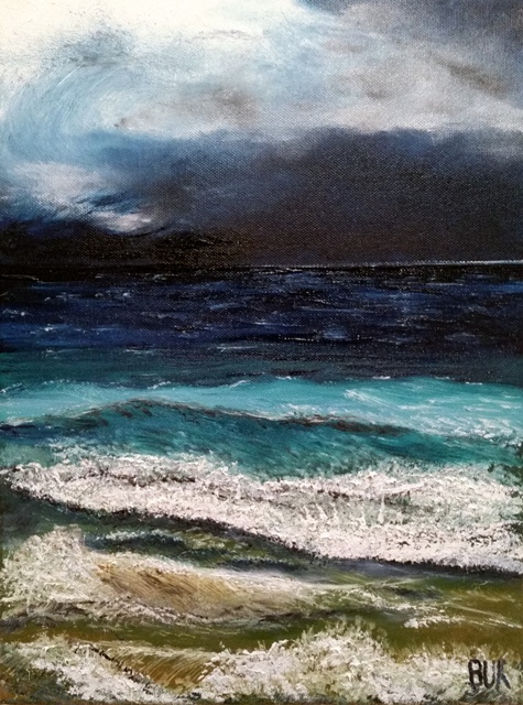 Jako motiv pro tento obrázek jsem také použil jednu z fresek ze zdí staré Nickovi rybářské restaurace a hlavně také vzpomínku na ostrůvek Samiopoula, kde jsme byli na výletě lodí a kde jsem poprvé uviděl ztroskotaný člun, vyvržený mořem na pevninu a ponechaný na pospas slunci, větru a dešti. Vyvržený člun se pomalu ztrácel v písku. Aby nebyl sám, umístil jsem k němu ještě jeden starý rybářský kutr z oprýskaných fresek z Nickovi rybářské restaurace. Bouřlivé moře, resp. oceán a rozeklané kamenné pobřeží jsem použil právě to z předpeklí z Tenerife.
