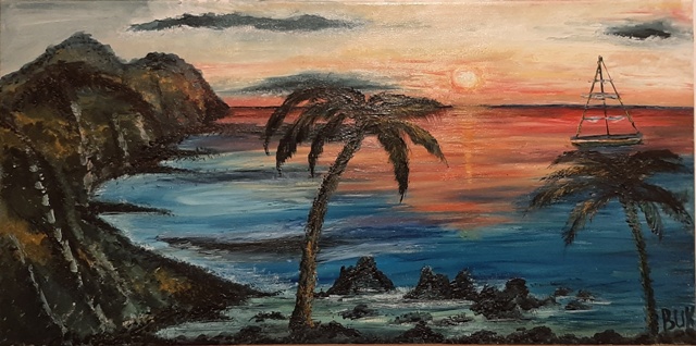 Zátoka s palmami Olej na plátně 35 x 70 cm