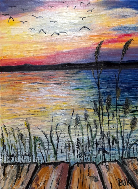 Obrázek Tráva u jezera Bajkal, v pořadí druhý, je malovaný na zakázku v roce 2023 stejně jako obrázek předcházející, Maják na Bretani II. Také na tomto obrázku je zcela zřetelné, při srovnání s obrázkem Tráva u jezera Bajkal původním, že každý obrázek je trochu jiný. Ale radost z malování a časová náročnost byly určitě na stejné úrovni.